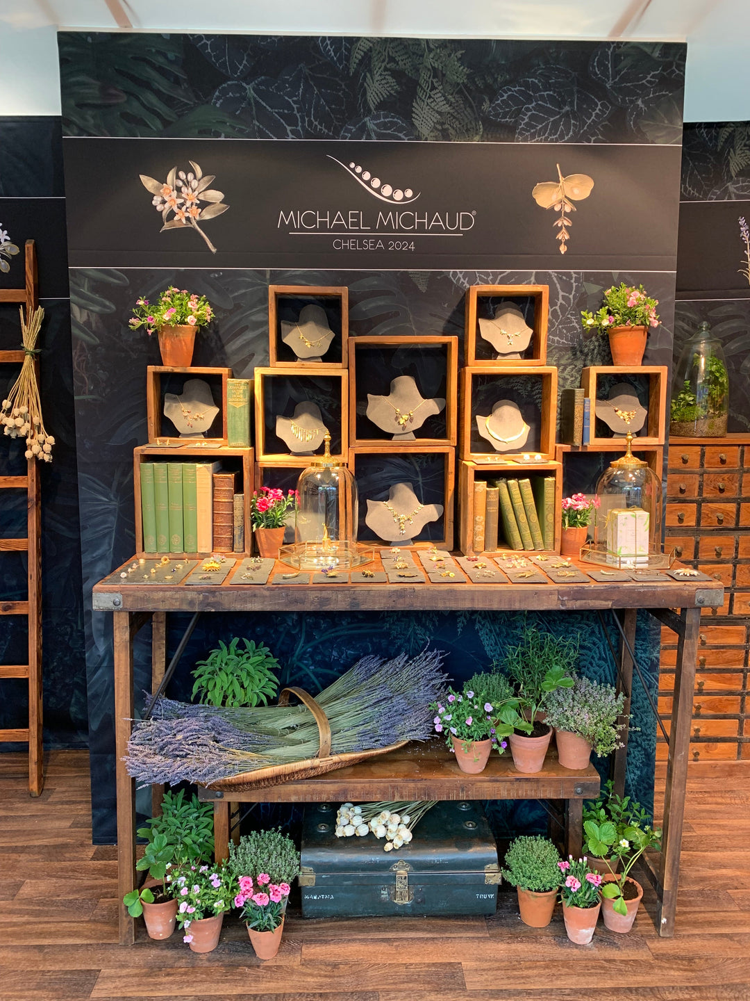 The Michael Michaud Jewellery Collection, designed by Michael Michaud, is a world renowned collection of botanical jewellery. It captures the beauty and exquisite detail of nature using soft patinas on bronze accented with pearls, beads, glass and semi-precious stones. His exacting attention to detail gives you true to nature, botanical jewellery.