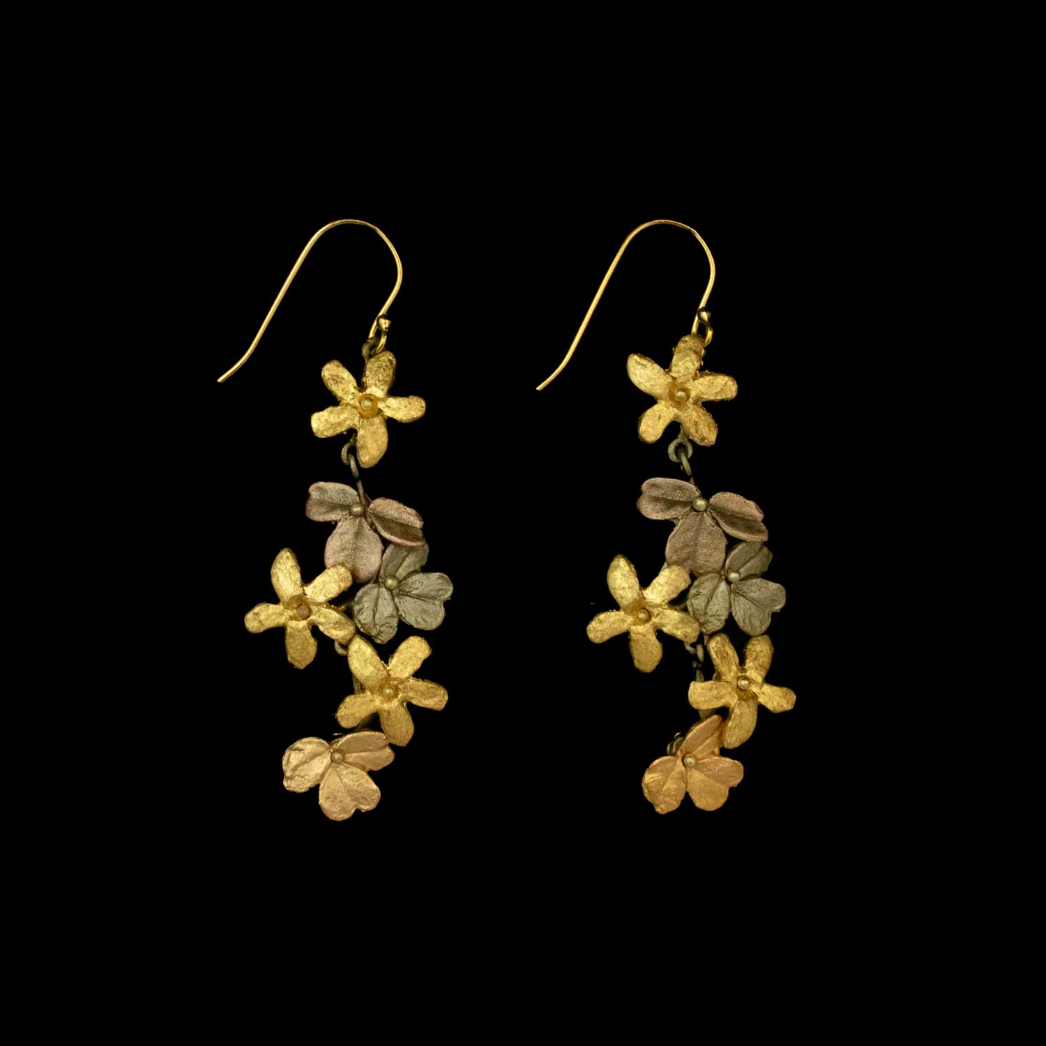 Materials: The Wood Sorrel earrings are cast in bronze, finished with our signature hand patina, 24kt gold and antique bronze over copper. The wires are 925 silver with a 24kt gold plating.